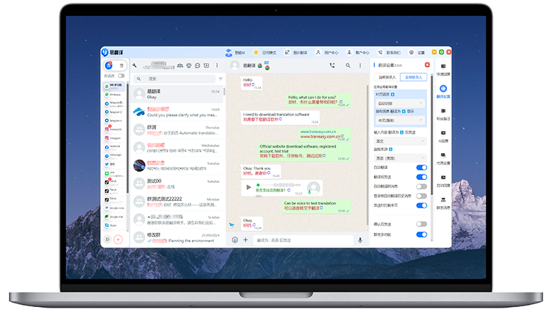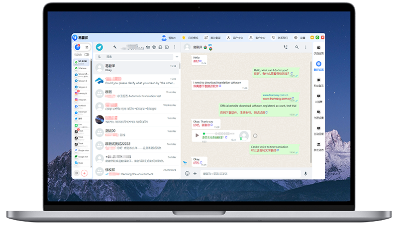 易翻译集成了whatsapp/line/zalo/telegram等全球主流社交软件